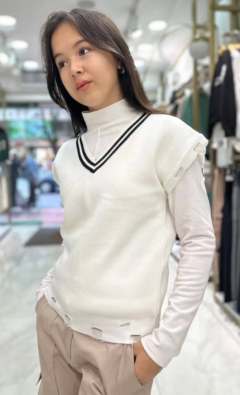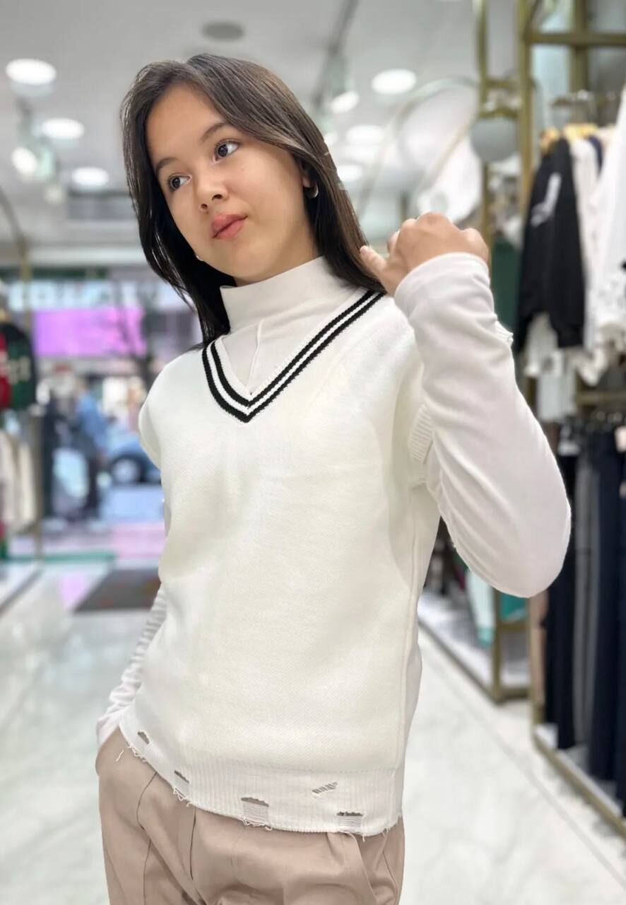 İnce trikodan üretilmiş, v yakalı bu süveter rahat ve şık bir görünüm sunar. Eteğinde ve kol uçlarındaki yırtık detaylar, modern ve farklı bir tarz yaratır. Hafif yapısı sayesinde dört mevsim rahatlıkla kullanılabilir, kombinlerinize özgünlük katar.