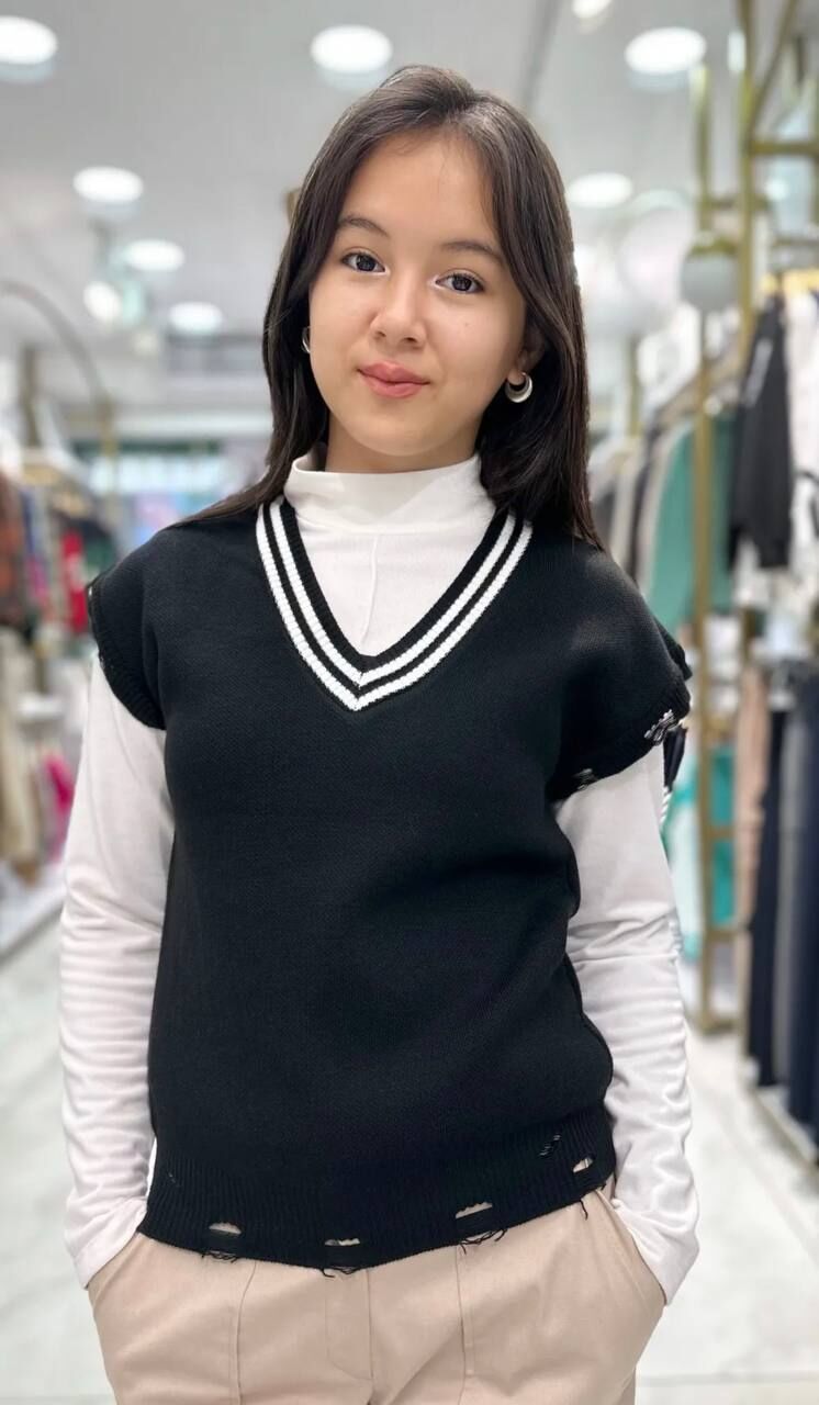 İnce triko v yakalı bu süveter, eteği ve kol uçlarındaki yırtık detaylarıyla dikkat çekiyor. Şık ve modern tasarımı sayesinde farklı kombinlere kolayca uyum sağlar. Hem günlük kullanım hem de özel günler için ideal, rahat ve stil sahibi bir tercih.