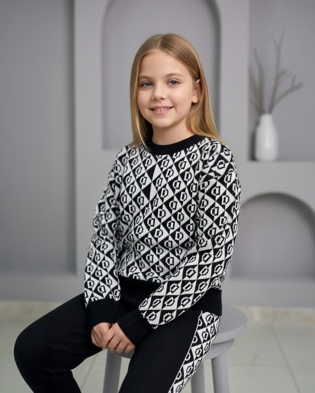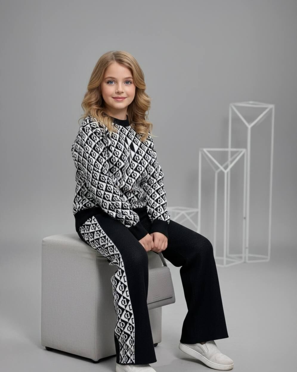 Şık ve rahatlığı bir arada sunan geometrik desenli triko takım, modern çizgileriyle dikkat çeker. Yumuşak dokusu ve esnek yapısıyla gün boyu konfor sağlar. Hem evde hem dış mekanda kullanıma uygundur, stilinize zarif bir dokunuş katar.