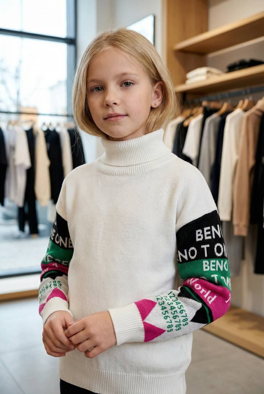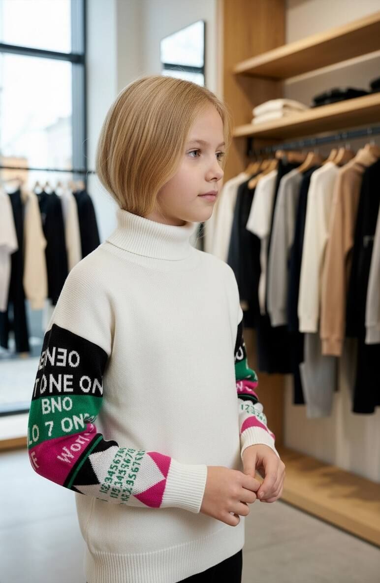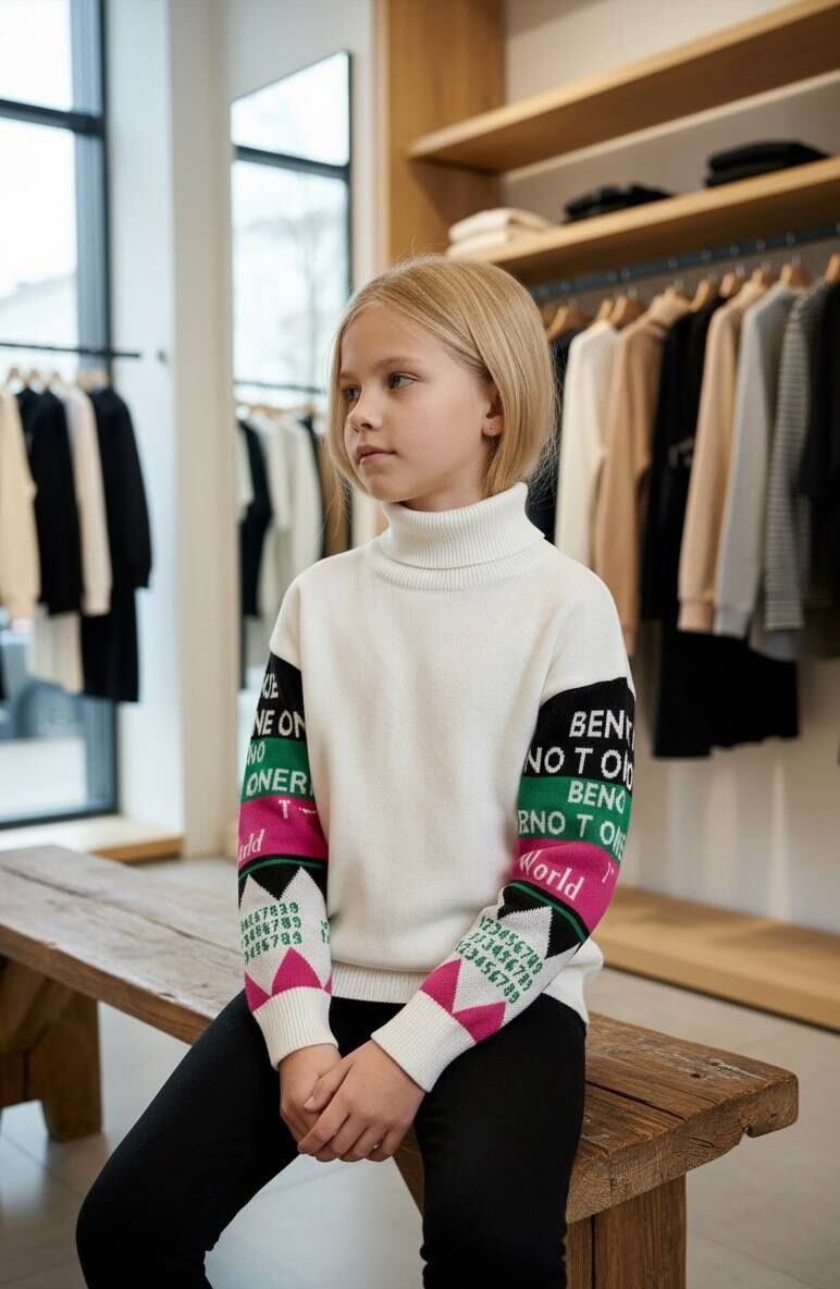 Akrilik iplikten üretilen, yazı desenli tam balıkçı yaka kız çocuk kazağı, şıklığı ve rahatlığı bir arada sunar. Yumuşak dokusuyla çocuğunuzun hassas cildine uyum sağlar. Günlük kullanıma uygun, sıcak tutan ve kolay bakım imkanı sunan ideal bir kıyafet seçeneğidir.