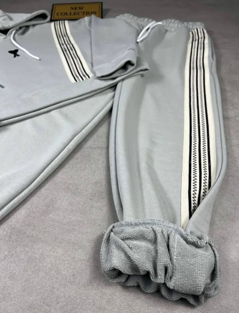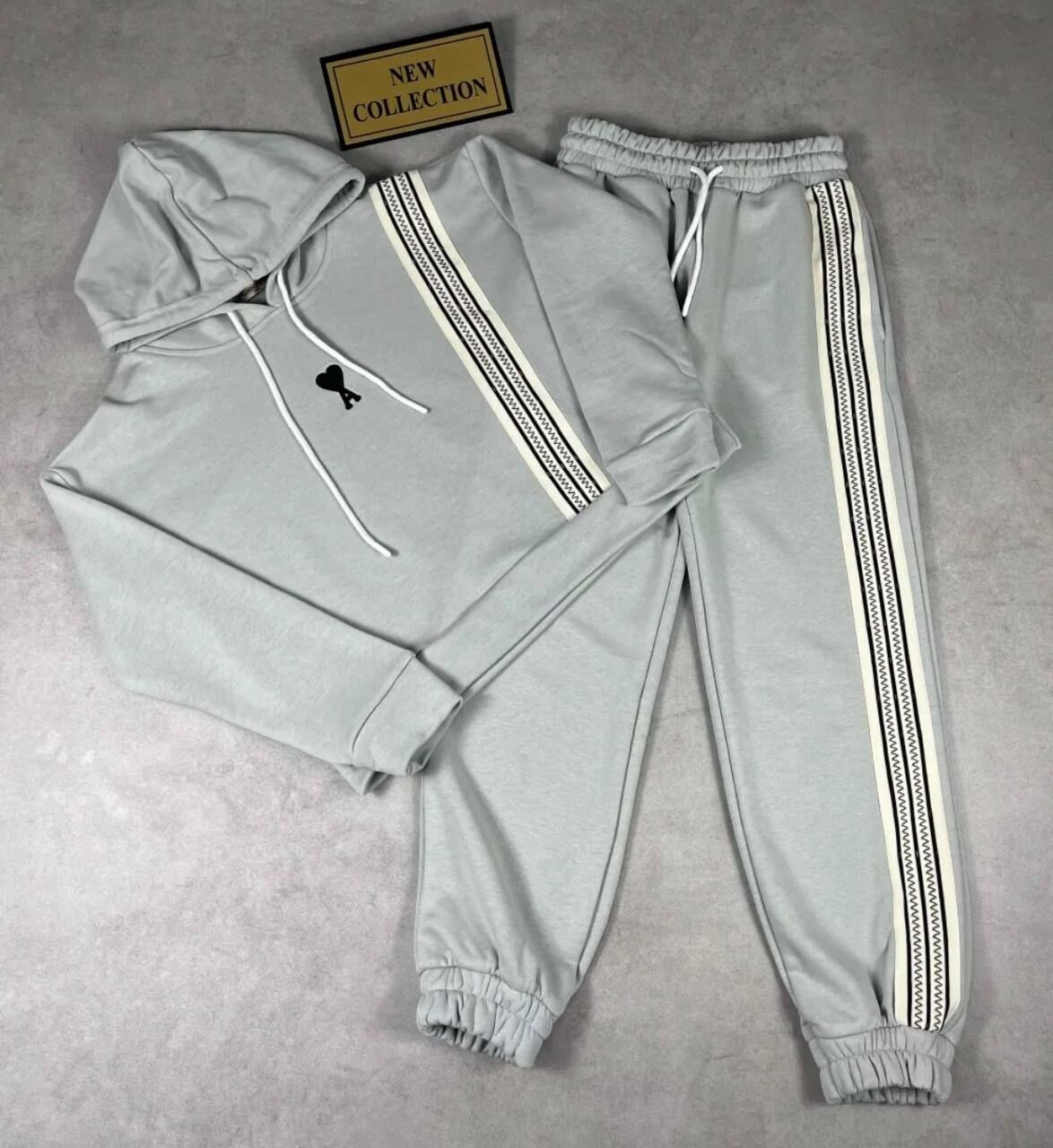 Şık ve rahat baharlık spor takım, üç iplik kumaştan üretilmiştir. Kapüşonlu üst kısmında zarif nakış detayları bulunurken, pantolon paçası lastiklidir. Hem üstte hem pantolonda yer alan şeritler, takıma sportif bir hava katmaktadır. Günlük kullanım için ideal bir seçimdir.