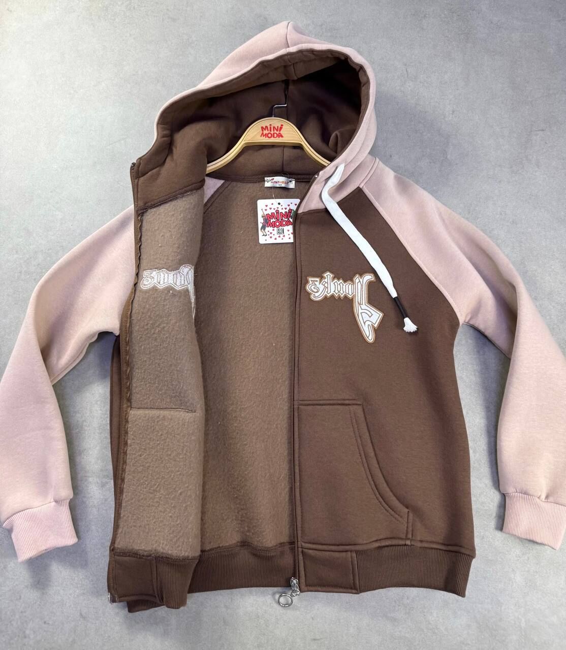 Üç İplik İçi Şardonlu Kumaştan Kışlık Fermuarlı Hoddie - 3859