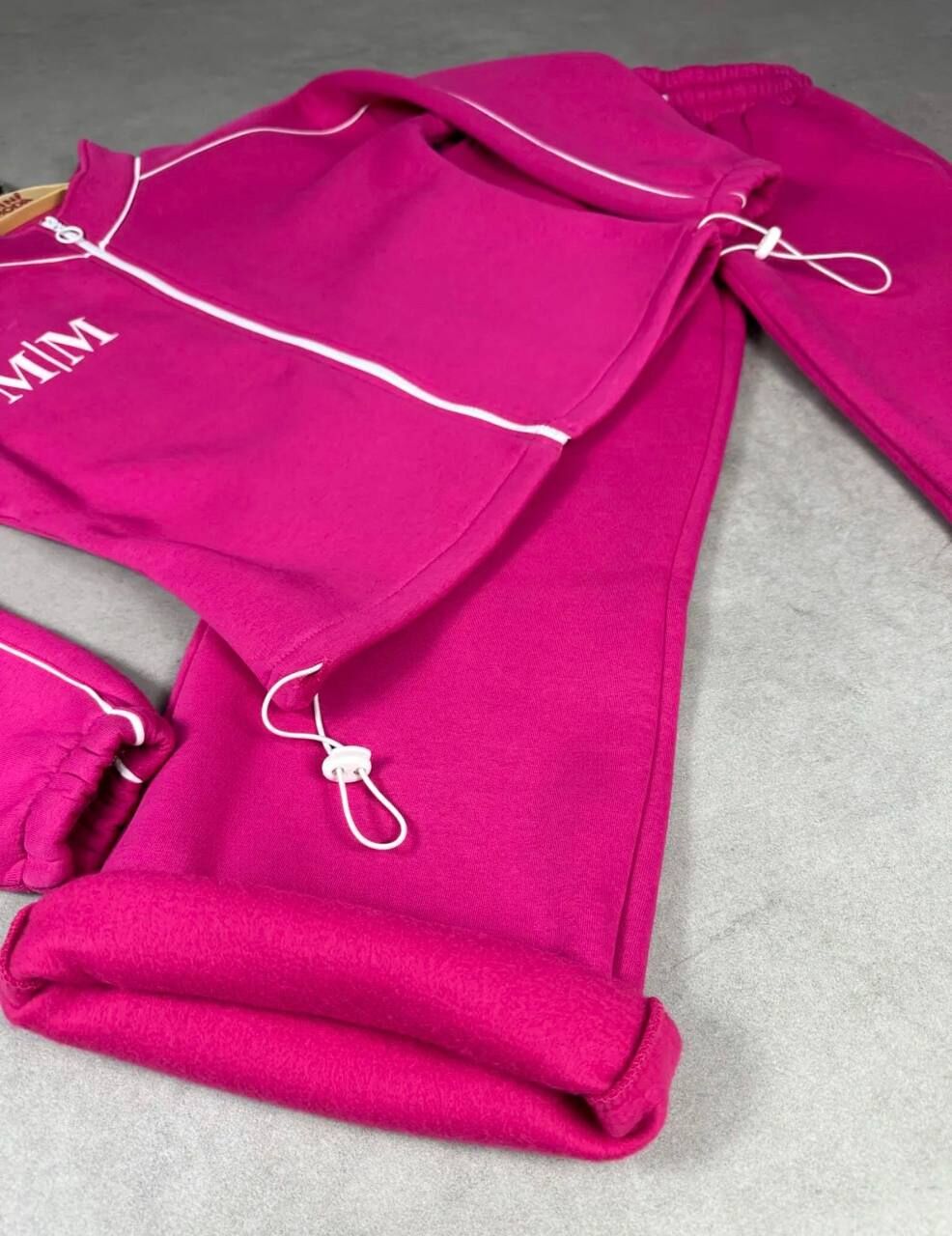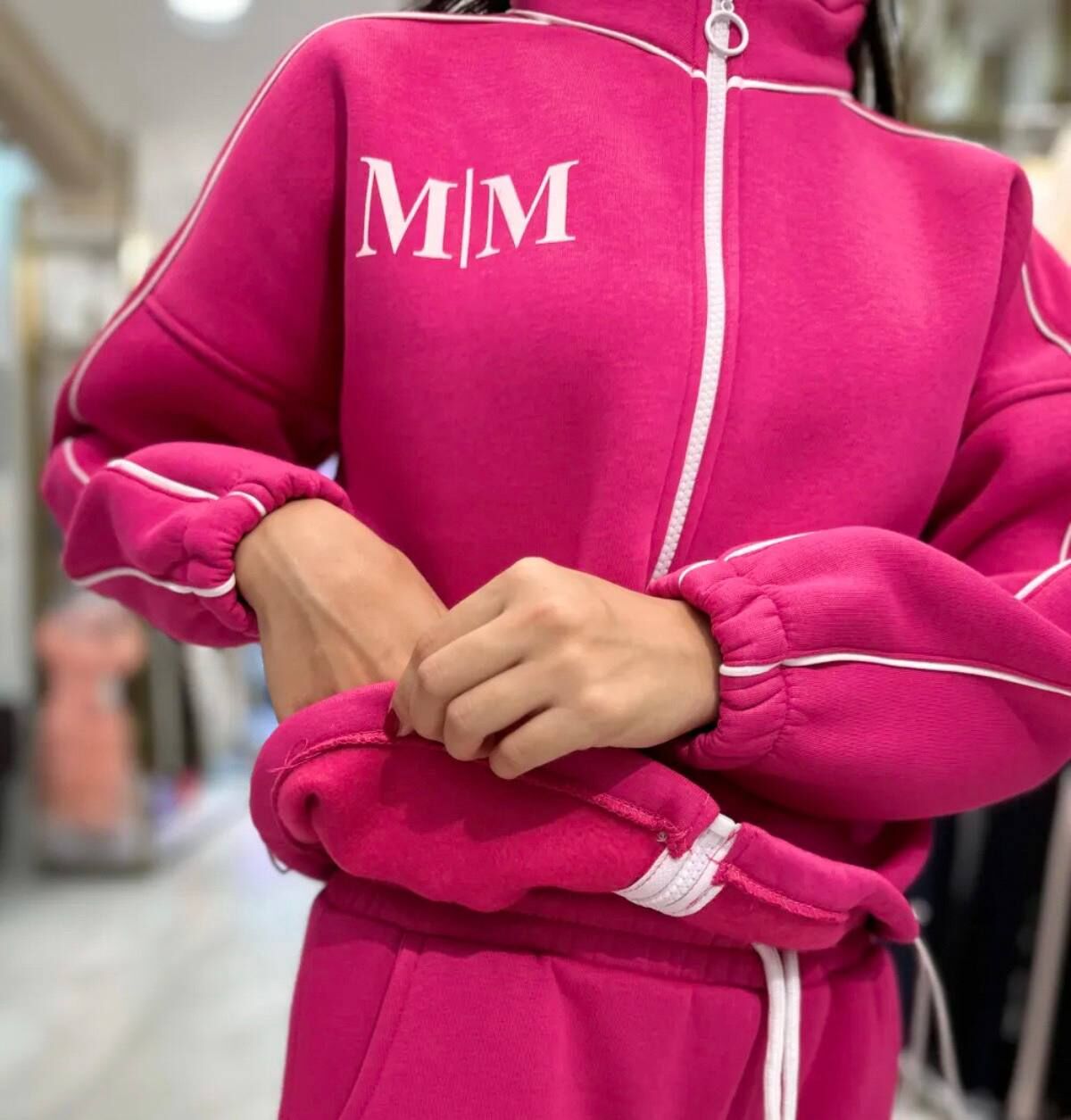 Soğuk havalar için ideal üç iplik içi şardonlu kumaştan üretilen bu spor takım, üst kısmında yarım balıkçı yaka ve fermuar detayıyla şıklığı yakalıyor. Önünde zarif MM baskısı, kollarında şerit detayları bulunur. Üst ve pantolonda ayarlanabilir lastikler sayesinde mükemmel uyum sağlar.